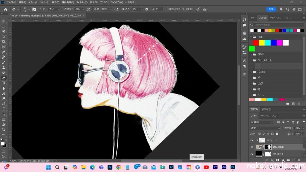 秋の大村市美術展に出す予定のイラストを細部までチェックして補修しました👀サイズはA1なので実寸まで拡大してから作業しました。