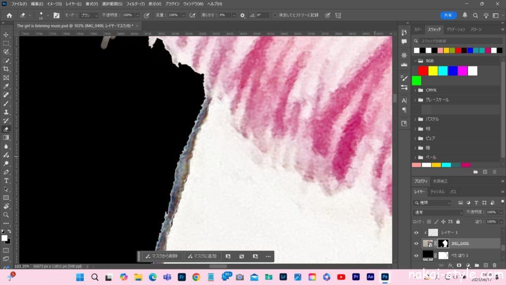 100%まで拡大すると線がギザギザなのが分かります😆 最初からデジタルで描いたならばこういう事にはなりません😅 アナログで描いたものなのでアナログの筆の跡が残ってます🖌️ そこを綺麗に慣らしておかないと見た目だけの作品になってしまうので、しっかりこだわりたいところですね😎