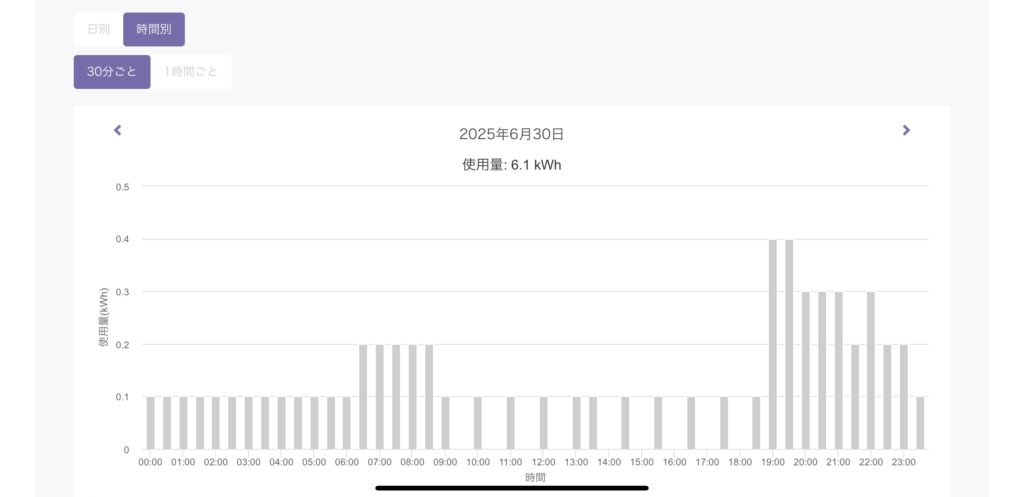 ↑この日は朝からエアコン消して出かけて夜に帰って来てからエアコン点けた時の電気使用量