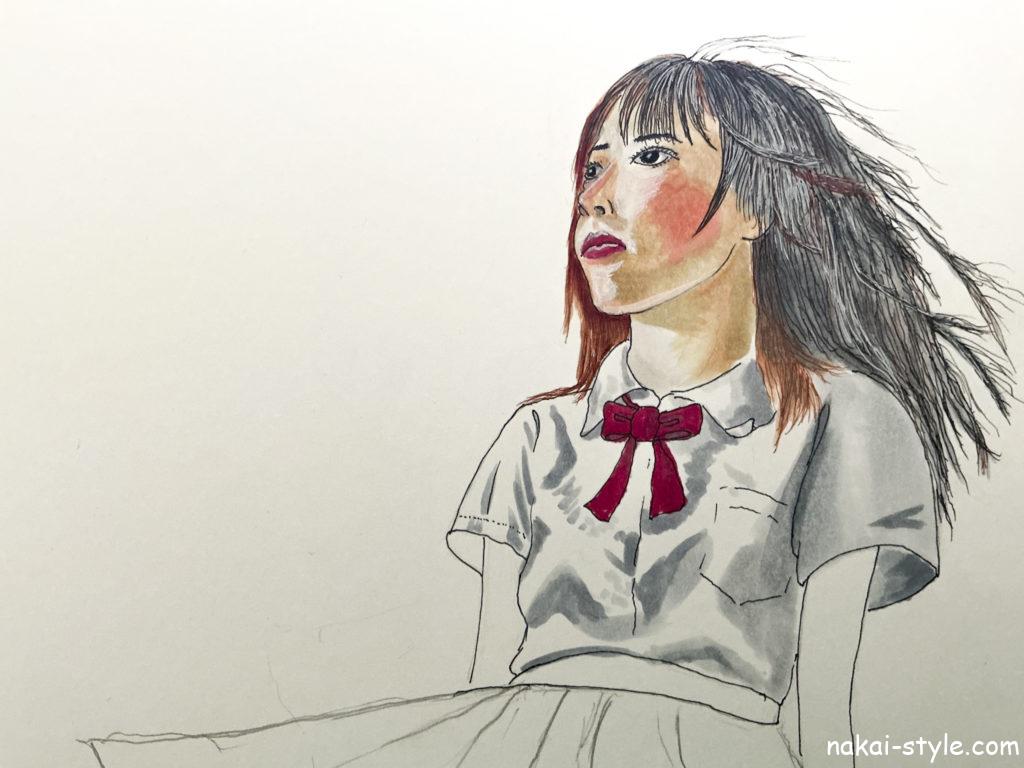 最初は下描きしてから徐々に仕上げて行きます👀髪は上手く描けるかな?とか肌の質感どうしよう?とか服のシワどうやって描こう?とか常に自問自答してます🫡