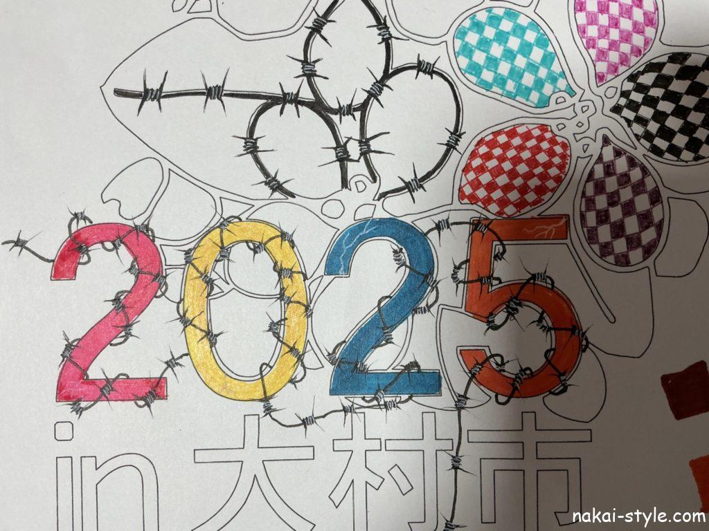 こんな感じです🥰 有刺鉄線をワンポイントで入れたのですが面白くなって『2025』の文字をぐるぐる巻きにしました🥰