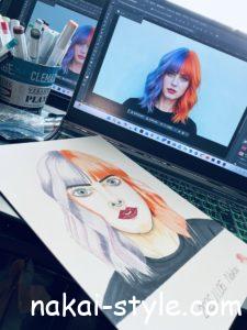 写真は下書き途中のイラスト😊ピンクのコーンロウがCOOL💕今週末はあまりイラスト描く時間ないかもしれないので完成は来週になるかな🥰