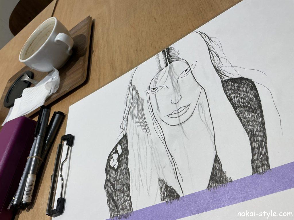 2025-11-18 2025-11-18 nakai-site ブログ aja Steely Dan のアルバム『aja 』エイジャを聴きながらカフェモカを飲みイラストを描く✏️心地よい時間⏰ 場所は大村市アーケードにある coto というカフェ☕️ ここに音浴博物館がレコードを持ち込み『音浴博物館ウィーク』というイベントを開催中です🥰 やっぱアナログレコードは良いね😊 ちなみにこのアルバムは日本人モデルの山口小夜子を起用してることで有名🥰 このレコジャケは自分が持っているレコードの中でも特に好きだ😍 レコード2枚聴いてる間にイラスト下描きほぼ完成😎