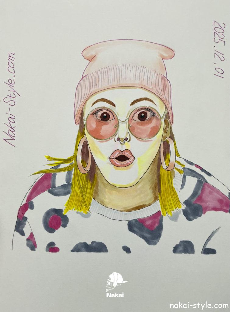 眼鏡を描くのにマスキングテープの芯を利用しました😀顔の大きさにマスキングテープの芯がバッチリ合いましたね🥰こういう偶然は歓迎ですね😃