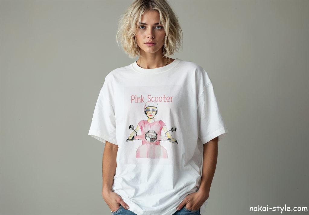 コレね🥰 このスクーターのGirlでTシャツ欲しいと頼まれてたので作りました😊他にも違うGirlのTシャツを頼まれてたのでそれも作りました🥰ついでにパーカーも作りました😎もうオーダーメイドみたいになって来ました😆後はネットショップで買って下さいませ🥰今回の個展でTシャツを飾ってたのでそれを見て「あたしも欲しかー😍Nakaiさん作ってよ」と言われたのでTシャツ飾った効果は有りますね😎
